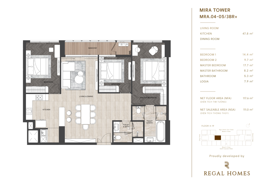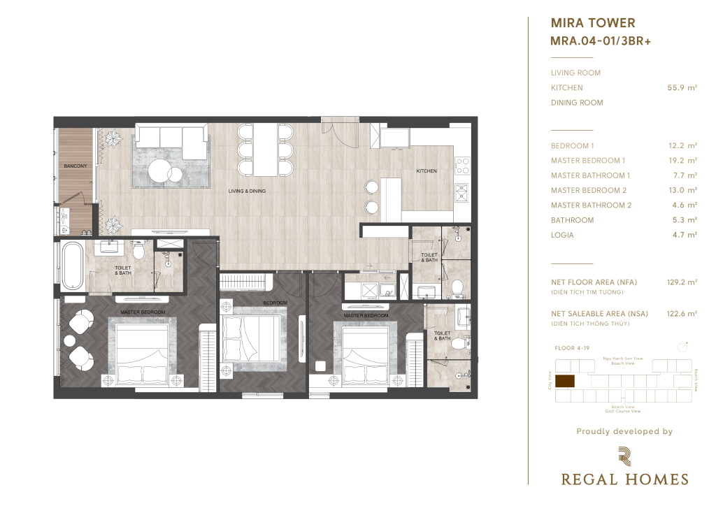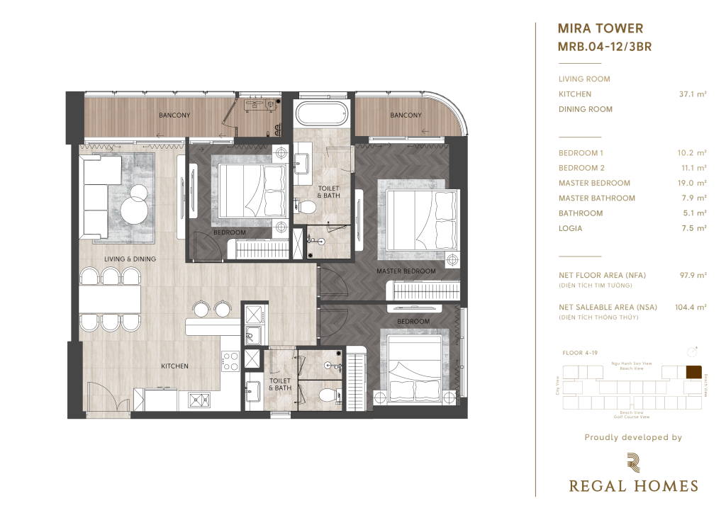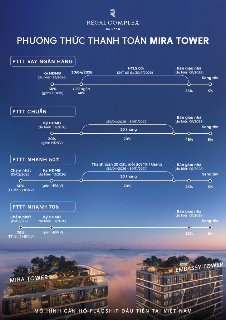 Regal Complex Đà Nẵng, nằm ngay trái tim KĐT Phú Mỹ An, không chỉ đơn thuần là nơi an cư, mà còn là một tuyên ngôn về phong cách sống thượng lưu. Với vị trí hai mặt tiền đường Đào Duy Tùng, chỉ cách biển Sơn Thủy 1,5km, danh thắng Ngũ Hành Sơn 2km và bãi biển Mỹ Khê 9km, bạn sẽ tận hưởng cuộc sống mà người khác chỉ dám mơ.