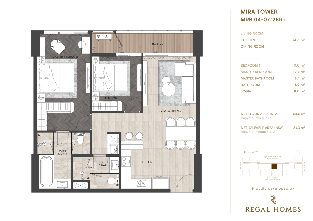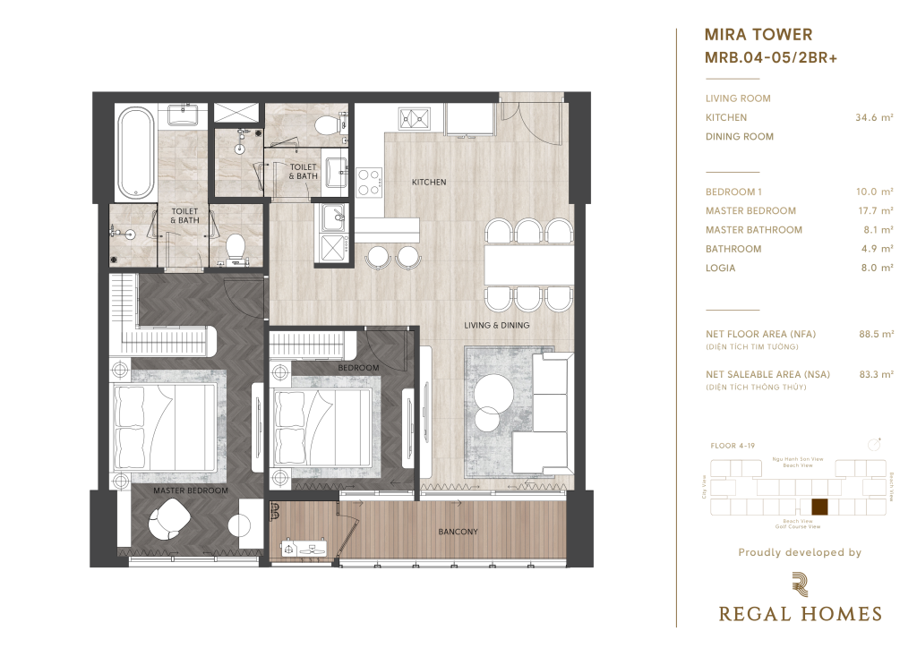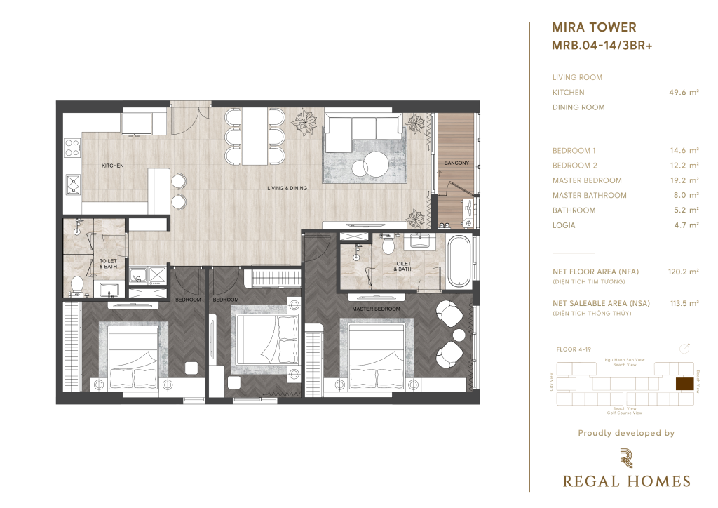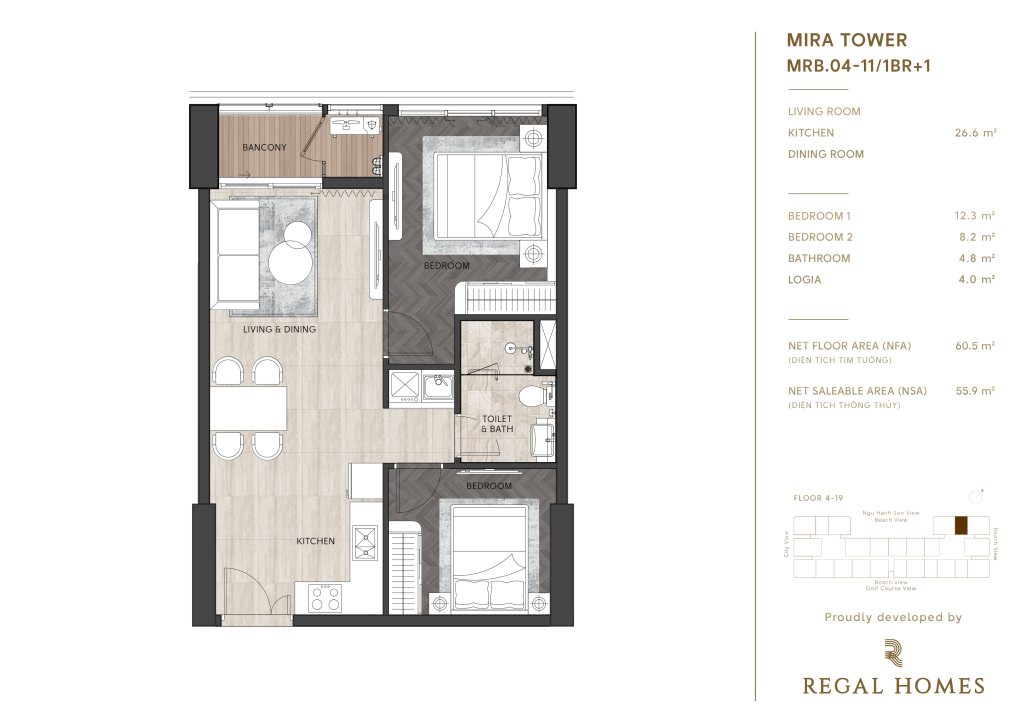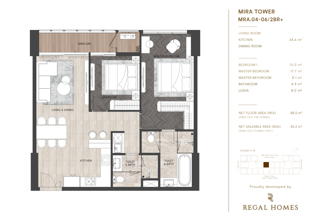 Regal Complex Đà Nẵng, nằm ngay trái tim KĐT Phú Mỹ An, không chỉ đơn thuần là nơi an cư, mà còn là một tuyên ngôn về phong cách sống thượng lưu. Với vị trí hai mặt tiền đường Đào Duy Tùng, chỉ cách biển Sơn Thủy 1,5km, danh thắng Ngũ Hành Sơn 2km và bãi biển Mỹ Khê 9km, bạn sẽ tận hưởng cuộc sống mà người khác chỉ dám mơ.